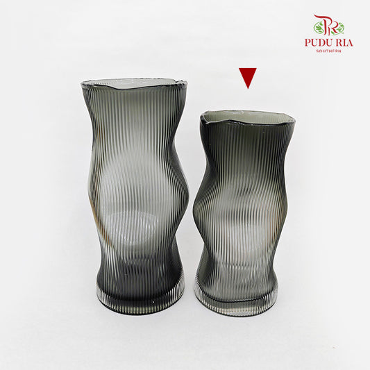 Curved Fluted Vase - Smoke Grey