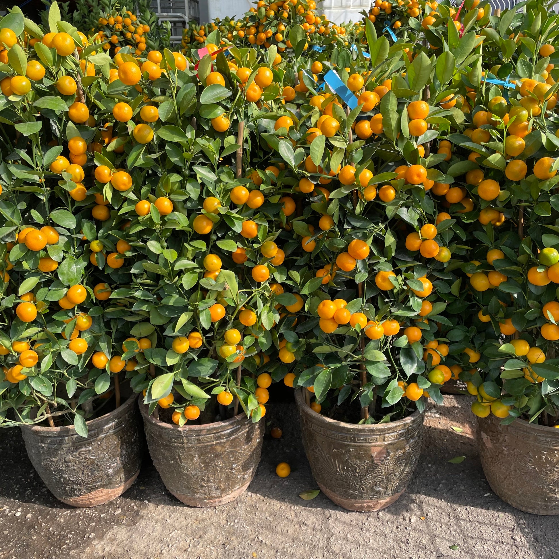 粤语中“桔”和“吉”谐音,所以金桔有吉祥如意的意思。在门口摆放桔子树,过年讨个好兆头