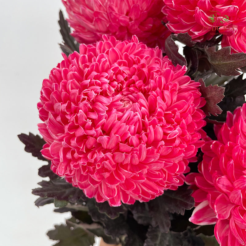 Peony Chrysanthemum Dyed Dark Pink - (5 Stems)